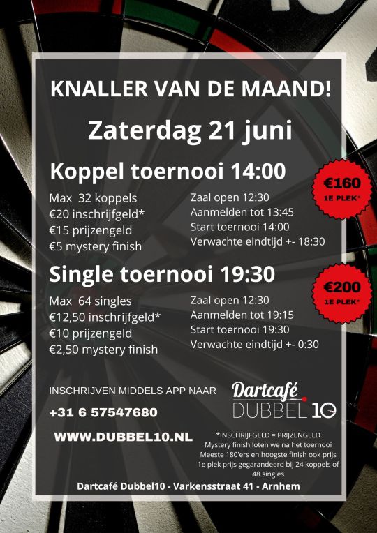 ✔ Grootste dartlocatie in de regio ✔ Ideale ligging in het centrum van Arnhem ✔ Maandelijkse darttoernooien met afwisselende formats ✔ Actieve deelname aan drie dartbonden ✔ Ruimte voor groepsuitjes en evenementen ✔ Grootste dartlocatie in de regio ✔ Ideale ligging in het centrum van Arnhem ✔ Maandelijkse darttoernooien met afwisselende formats ✔ Actieve deelname aan drie dartbonden ✔ Ruimte voor groepsuitjes en evenementen